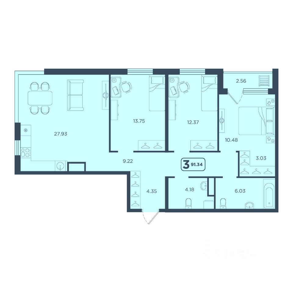 Продаётся 3-комнатная квартира в строящемся доме (ГП-1), срок сдачи: IV-кв. 2028, общей площадью 91.34 кв.м., на 18 этаже. Новый жилой комплекс "Континент" от Специализированного застройщика "Расцвет" расположен по адресу: г. Тюмень, по ул. Червишевский Тракт.