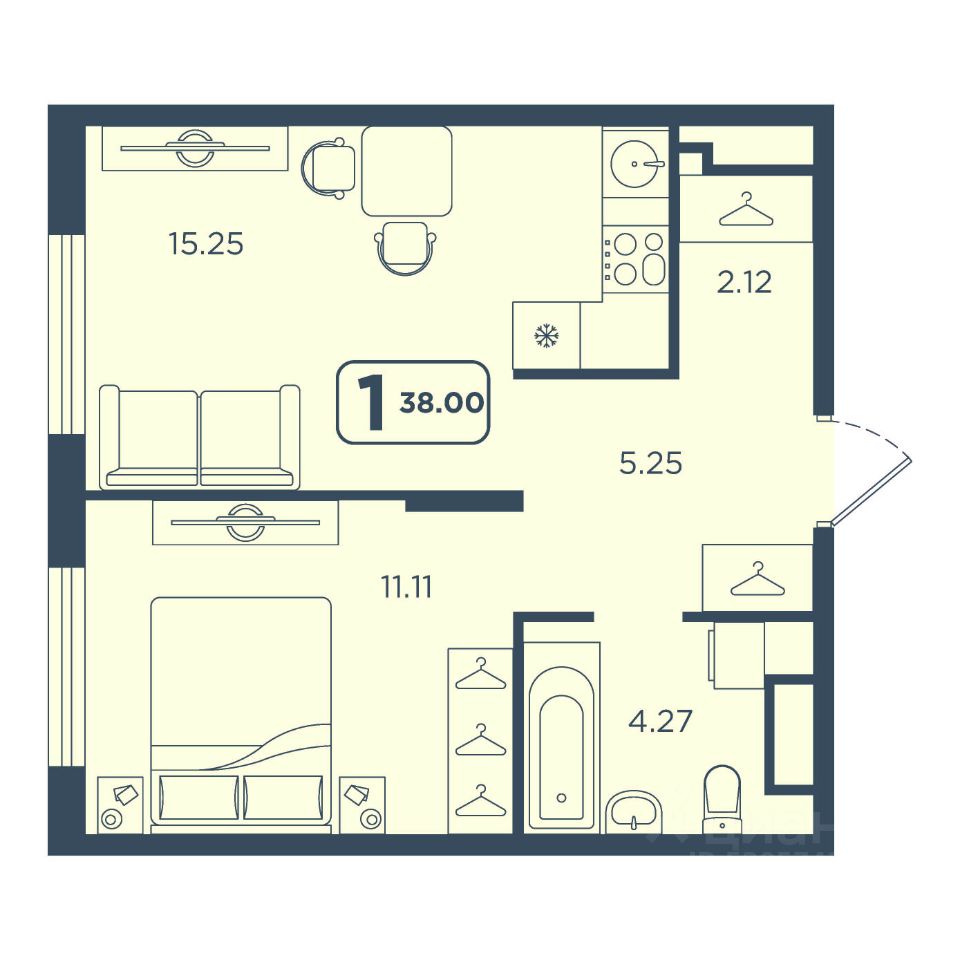 Продаётся 1-комнатная квартира в строящемся доме (ГП-1), срок сдачи: IV-кв. 2028, общей площадью 38 кв.м., на 19 этаже. Новый жилой комплекс "Континент" от Специализированного застройщика "Расцвет" расположен по адресу: г. Тюмень, по ул. Червишевский Тракт.