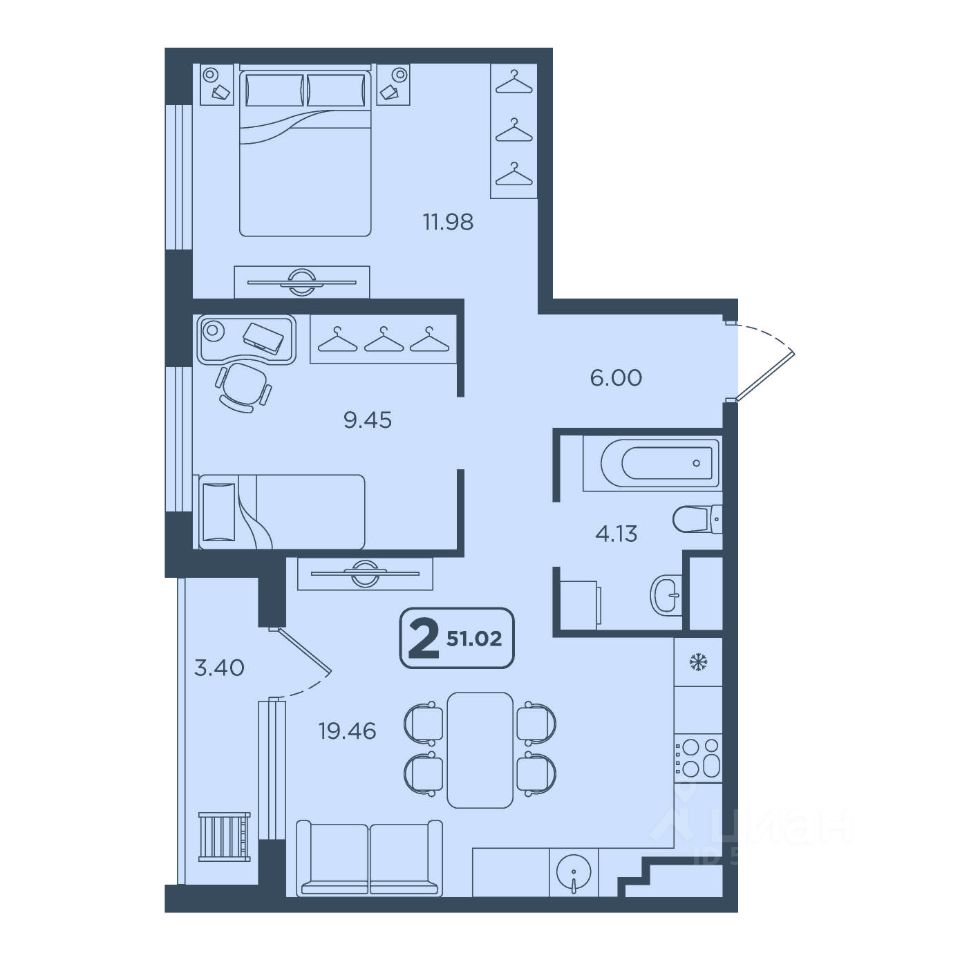 Продаётся 2-комнатная квартира в строящемся доме (ГП-1), срок сдачи: IV-кв. 2028, общей площадью 51.02 кв.м., на 25 этаже. Новый жилой комплекс "Континент" от Специализированного застройщика "Расцвет" расположен по адресу: г. Тюмень, по ул. Червишевский Тракт.