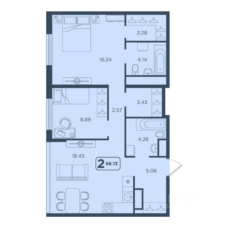 Продаётся 2-комнатная квартира в строящемся доме (ГП-1), срок сдачи: IV-кв. 2028, общей площадью 66.13 кв.м., на 25 этаже. Новый жилой комплекс "Континент" от Специализированного застройщика "Расцвет" расположен по адресу: г. Тюмень, по ул. Червишевский Тракт.