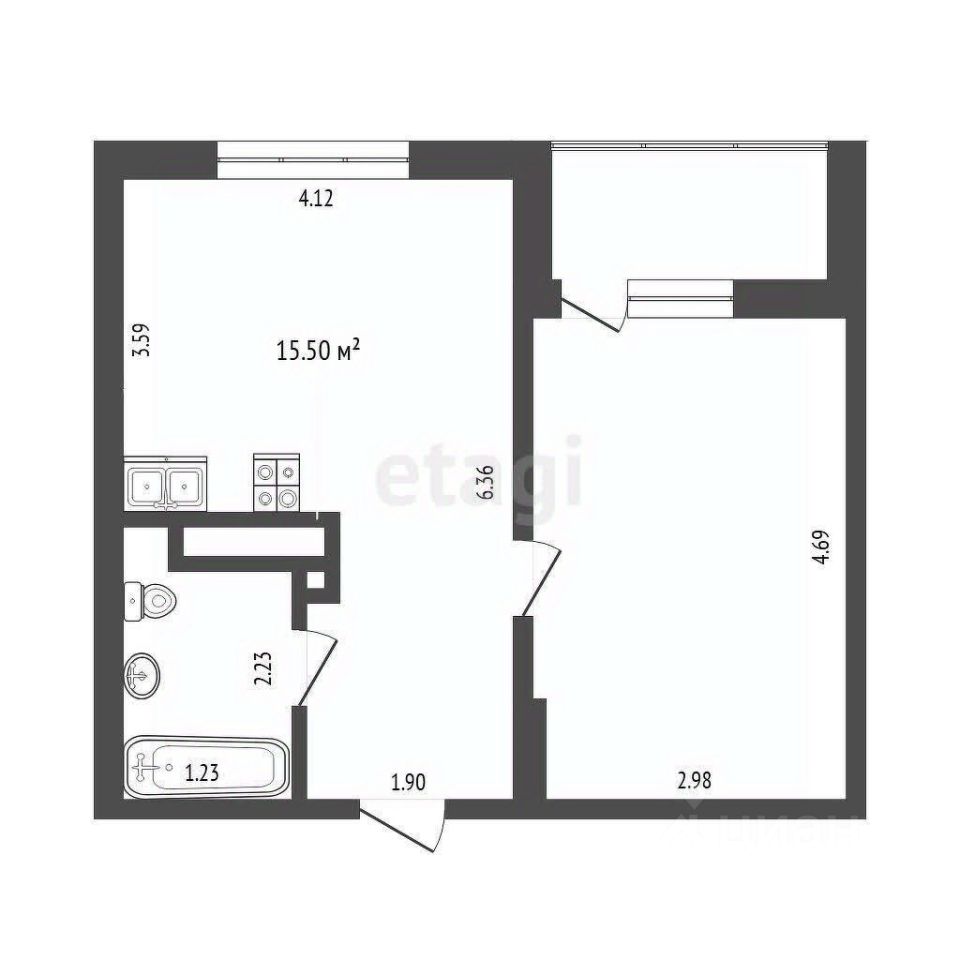 Площадь кухни15,5 м²