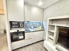 Предлагается квартира-студия площадью 24,3 м² на 10-м этаже нового жилого комплекса с качественным современным ремонтом и продуманной инженерной инфраструктурой. Объект никогда не использовался для проживания — все работы выполнены с нуля с применением надежных материалов и технологий. Электрическая разводка выполнена кабелем увеличенного сечения с 24 розетками и 12 автоматами в щитке, счетчик вынесен в коридор. В санузле и на лоджии установлены теплые полы, разведены розетки RJ-45 для локальной сети и телевидения. Квартира оснащена системой "Умный дом" с датчиками движения и открытия дверей, круглосуточным онлайн-видеонаблюдением с уведомлениями на телефон и резервным блоком питания. Встроенная техника включает стиральную машину, холодильник с морозильной камерой, духовой шкаф, варочную панель, вытяжку с низким уровнем шума, микроволновую печь и мультимедийный телевизор. Санузел оборудован душевой кабиной с функцией массажа, полотенцесушителем и мощной вентиляцией.