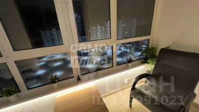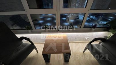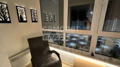 Окна в пол, витражное остекление. Лоджия остекленная (тройной стеклопакет), утепленная, установлен обогреватель, удобные кресла и столик.