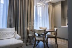 Квартира расположена в историческом центре Тюмени, обеспечивая безупречную транспортную доступность и развитую инфраструктуру в шаговой доступности. Объект представляет собой современное жилое пространство с продуманной открытой планировкой, где объединены кухня и гостиная. Панорамное остекление этой зоны наполняет интерьер естественным светом и открывает вид на город. Ключевой особенностью является просторный балкон, который служит продолжением жилой площади и предлагает возможность для отдыха на открытом воздухе. Спальня изолирована, что гарантирует приватность. Отделка выполнена в стиле элегантного минимализма с использованием натуральных материалов, что подчеркивает качество и долговечность. Объект полностью укомплектован современной встроенной техникой, функциональной мебелью и инженерными решениями, включая мультизональную климатическую систему и электропривод для штор. Состояние квартиры — идеальное, позволяющее заселиться сразу после оформления сделки. Это предложение сочетает преимущества центральной локации, готового к проживанию формата и лаконичного дизайна, ориентированного на практичность и комфорт для повседневной жизни.