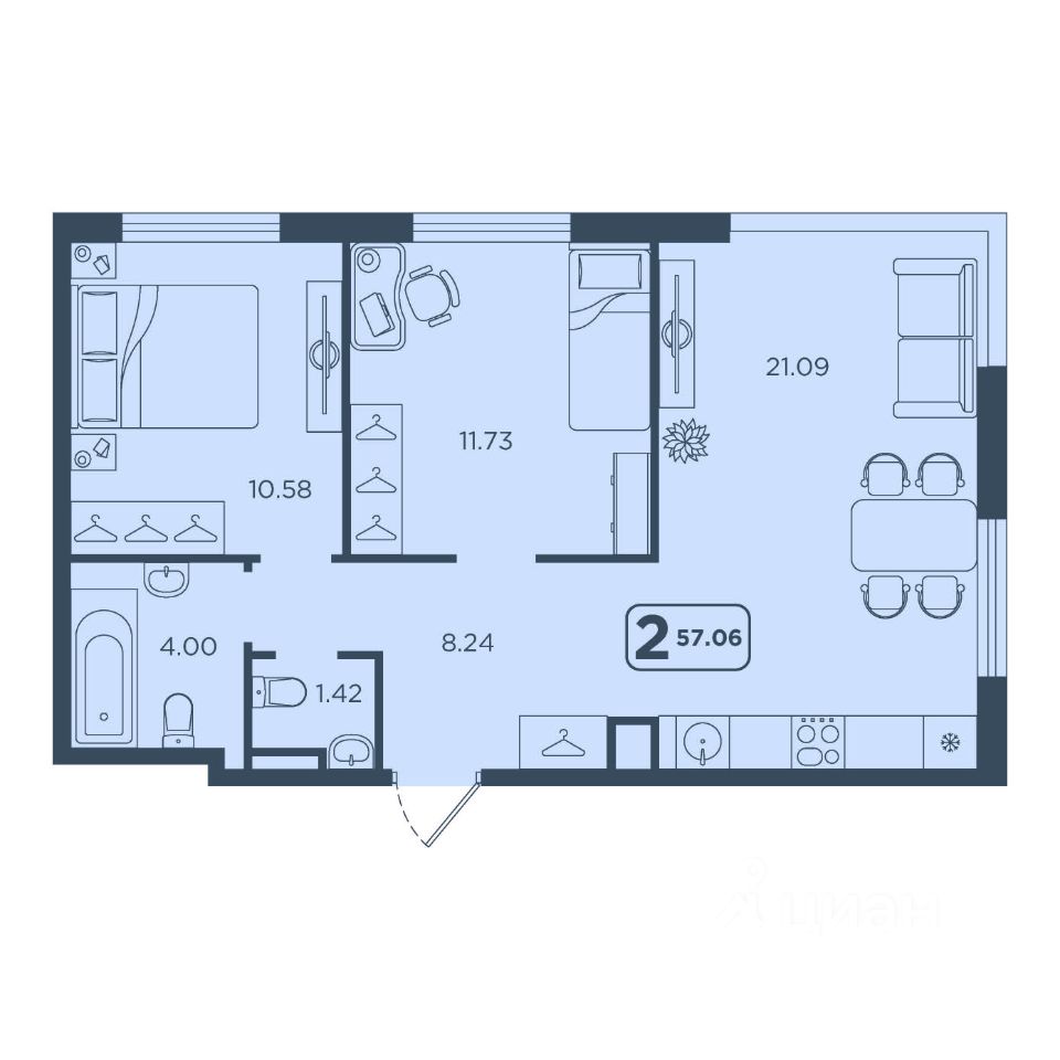 Продаётся 2-комнатная квартира в строящемся доме (ГП-1), срок сдачи: IV-кв. 2028, общей площадью 57.06 кв.м., на 4 этаже. Новый жилой комплекс "Континент" от Специализированного застройщика "Расцвет" расположен по адресу: г. Тюмень, по ул. Червишевский Тракт.