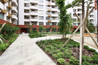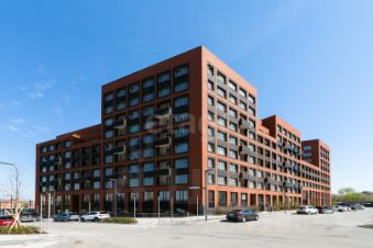 Фасады дома оформлены в современном стиле, где керамический кирпич песочного оттенка органично сочетается с легкой светло-зеленой штукатуркой. Внутри комплекса предусмотрено 137 современных квартир, а закрытый двор гарантирует безопасность и спокойствие для вас и ваших близких.