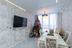 Ремонт выполнен с применением качественных материалов: по всей квартире установлена система теплого пола, в спальнях уложен кварц-винил, в зонах повышенной проходимости — керамогранит, смонтированы подвесные потолки. Дом отличается низкой плотностью жителей — на этаже расположено всего четыре квартиры, что гарантирует тишину и конфиденциальность. Придомовая территория благоустроена: выделены зоны озеленения с парковыми качелями, оборудована площадка для йоги, проложены пешеходные и велодорожки вдоль реки с выходом к пирсу.