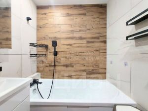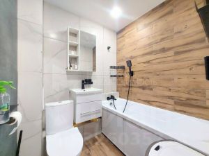 Ремонт выполнен качественно, с использованием современных материалов, и предполагает полную готовность к заселению — в стоимость входит все, что видите на фото, включая диван и стиральную машину.