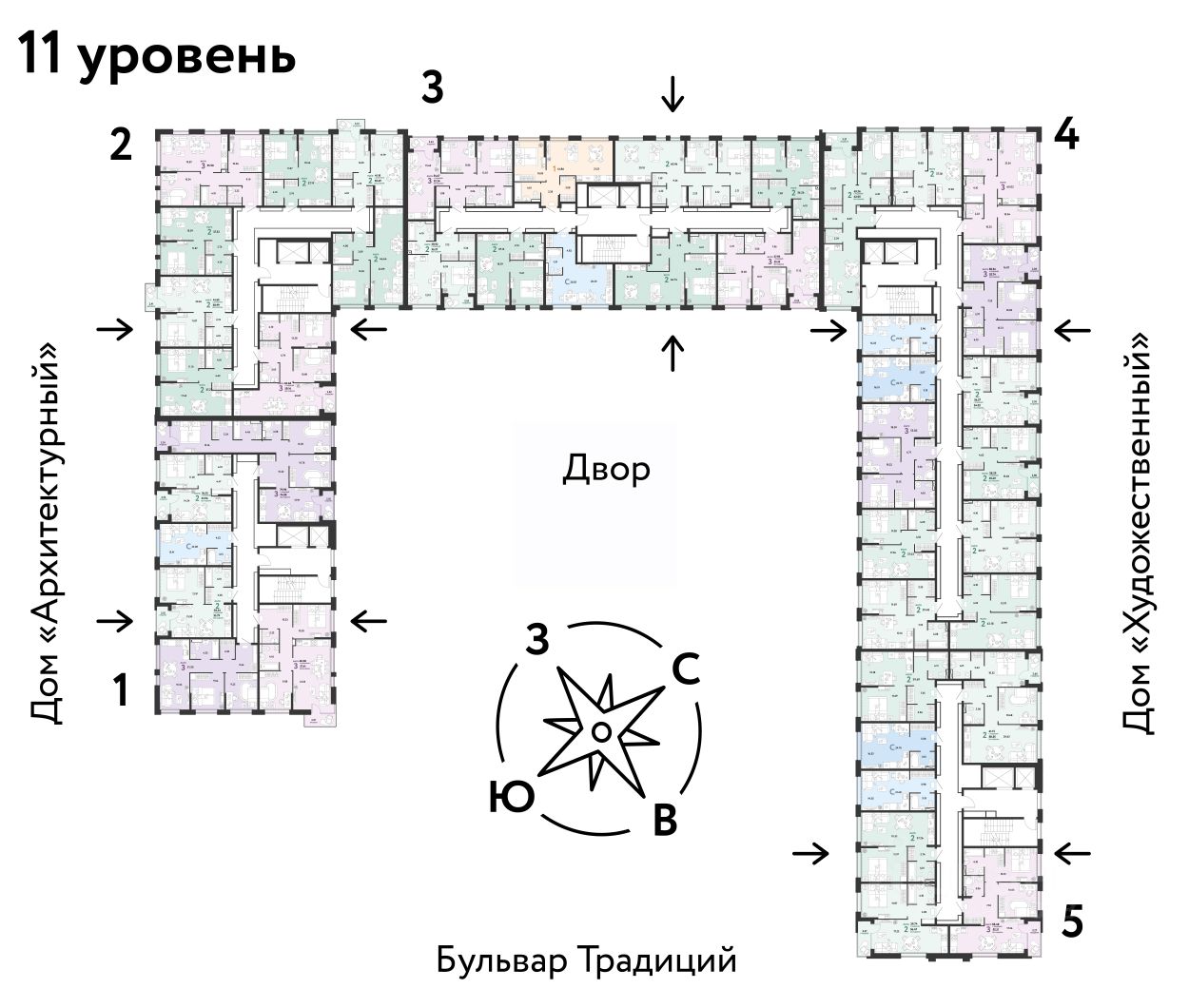 -Сквозные парадные с прозрачными входными группами, колясочными и велосипедными