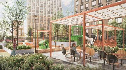 -Школа, зеленый сквер и пешеходный бульвар прямо внутри квартала