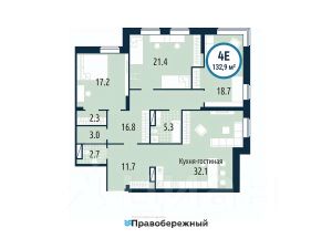В квартире просторная кухня-гостиная и три спальни. Одну из них можно разделить на две самостоятельные комнаты с помощью перегородки там два окна и достаточно квадратов. Тогда получится дополнительная детская. Для хранения продуманы ниши под шкафы и гардеробные комнаты.