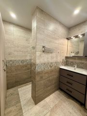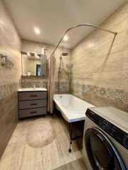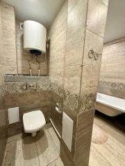 Санузел совмещен и полностью облицован кафельной плиткой, что обеспечивает легкую уборку и создает чистоту. При покупке квартиры остается вся мебель и бытовая техника , что позволит вам сразу же наслаждаться комфортом и удобством.
