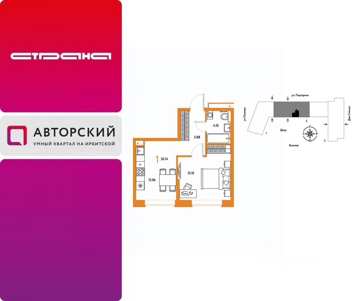 Продается 1комнатная квартира на 3 этаже от застройщика Страна Девелопмент. Площадь квартиры 35,14 кв. м.