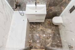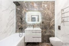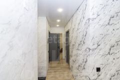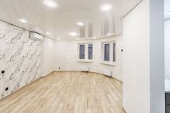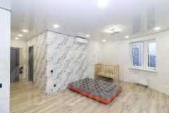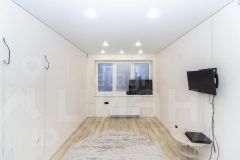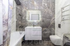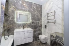 В квартире выполнен современный ремонт,натяжные потолки с устройством карнизов, керамогранит в прихожей, в санузле и ванне, инсталяция, автоматическая телеметрия, базовый комплект "умного дома", дополнительная шумоизоляция.