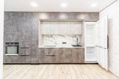 В квартире установлена встроенная современная кухня 4,7 м плюс остров, оборудована гардеробная, кониционер.