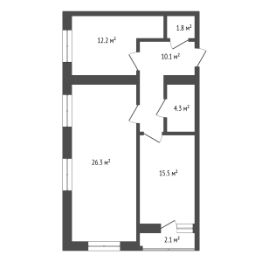 В отличие от большинства вариантов в этом ЖК, где кухня-гостиная является проходной, здесь все комнаты изолированные.