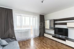Квартира полностью готова к проживанию: выполнен качественный ремонт с натяжными потолками, обоями на стенах и линолеумом на полу. Санузел отделан керамической плиткой, предусмотрена удобная гардеробная. Особого внимания заслуживает просторная лоджия, объединяющая кухню и комнату. При желании ее можно утеплить и превратить в дополнительное жилое пространство, либо разделить перегородкой для большей функциональности. Вся мебель остается новому владельцу, что избавляет от необходимости тратить время и средства на обустройство.