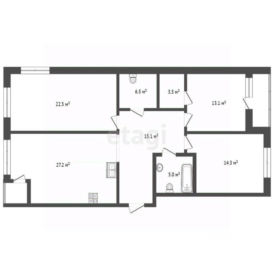 Пространство квартиры включает в себя кухню-гостиную, что создает идеальные условия для общения и семейных ужинов. В мастер-спальне есть большая гардеробная - всегда приятное дополнение для вашего комфорта.