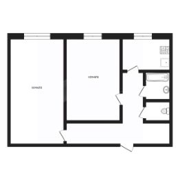 Продается двухкомнатная квартира площадью 44,5 м2. в пятиэтажном кирпичном доме, на пятом этаже.