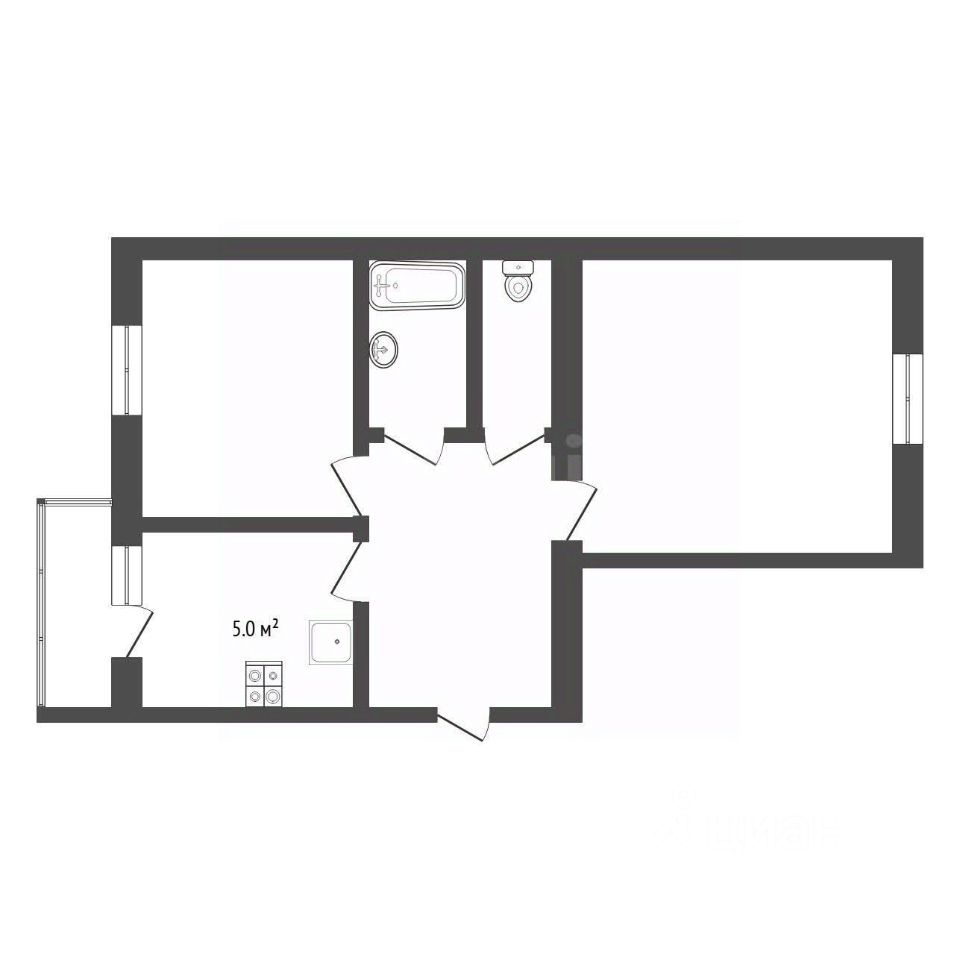 Формат: 2+ с просторной кухней-гостиной.