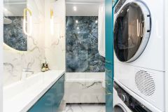 Вся мебель выполнена на заказ (интегрированные ручки, доводчики Blum).