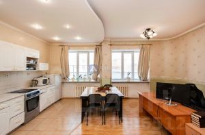 Квартира продается с кухонным гарнитуром и встроенной бытовой техникой (электроплита Gorenje, стиральная машина с сушилкой Kraft, посудомоечная машина, микроволновая печь, холодильник). Также остается некоторая мебель: большой книжный шкаф, кухонный шкаф и прихожая.