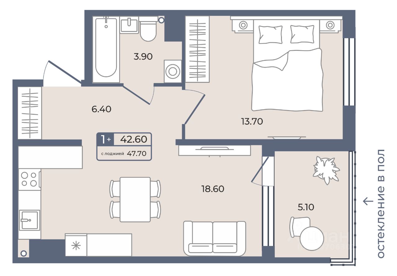 Общая площадь42,6 м²