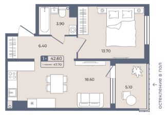 Продается 1-комн. квартира, 42,6 м²