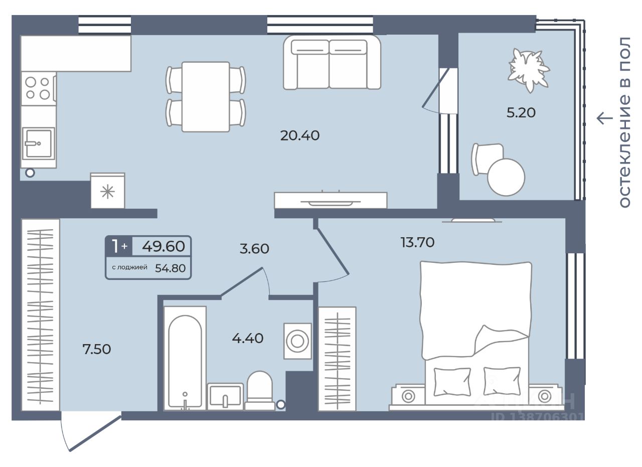 Общая площадь49,6 м²