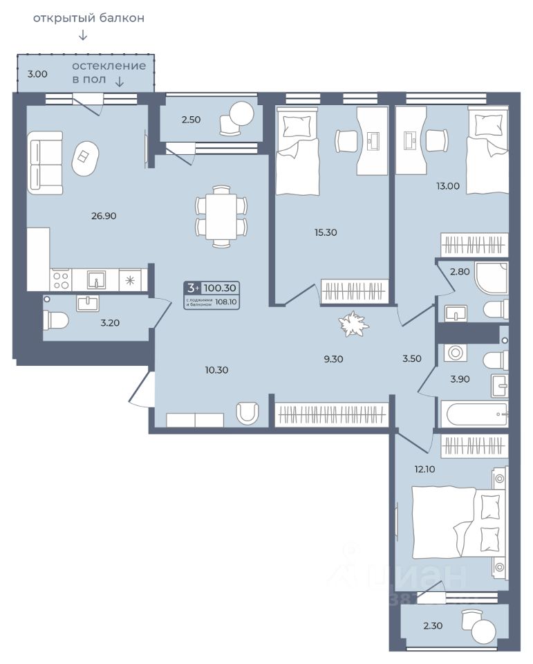 Общая площадь100,3 м²