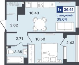 Общая площадь36,61 м²