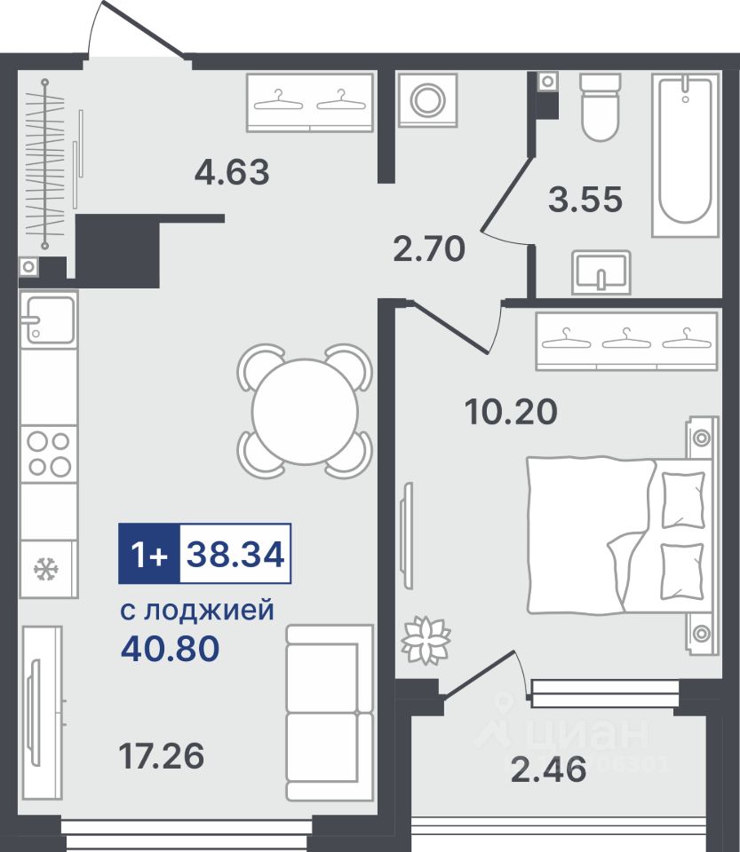 Общая площадь38,34 м²