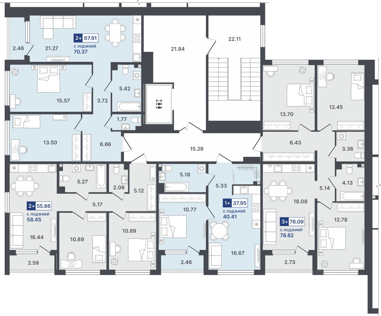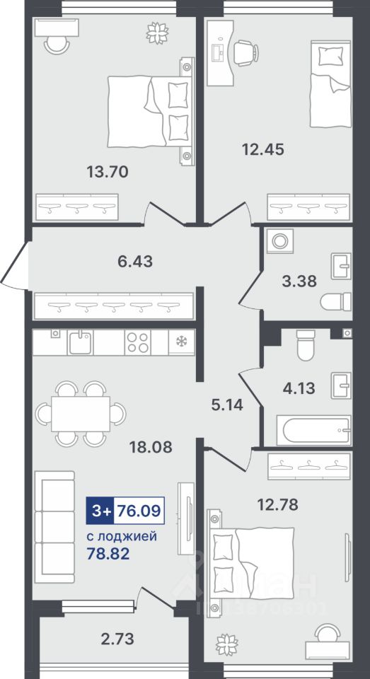 Общая площадь76,09 м²