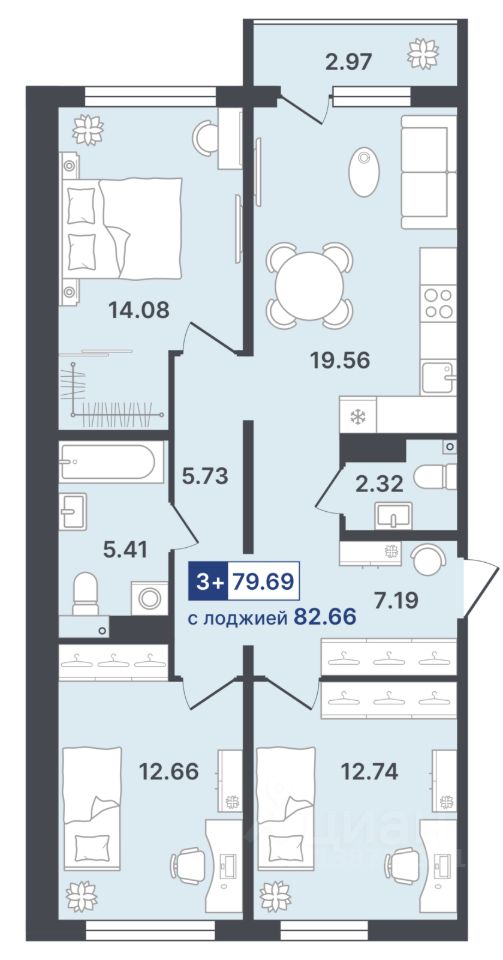 Общая площадь79,69 м²