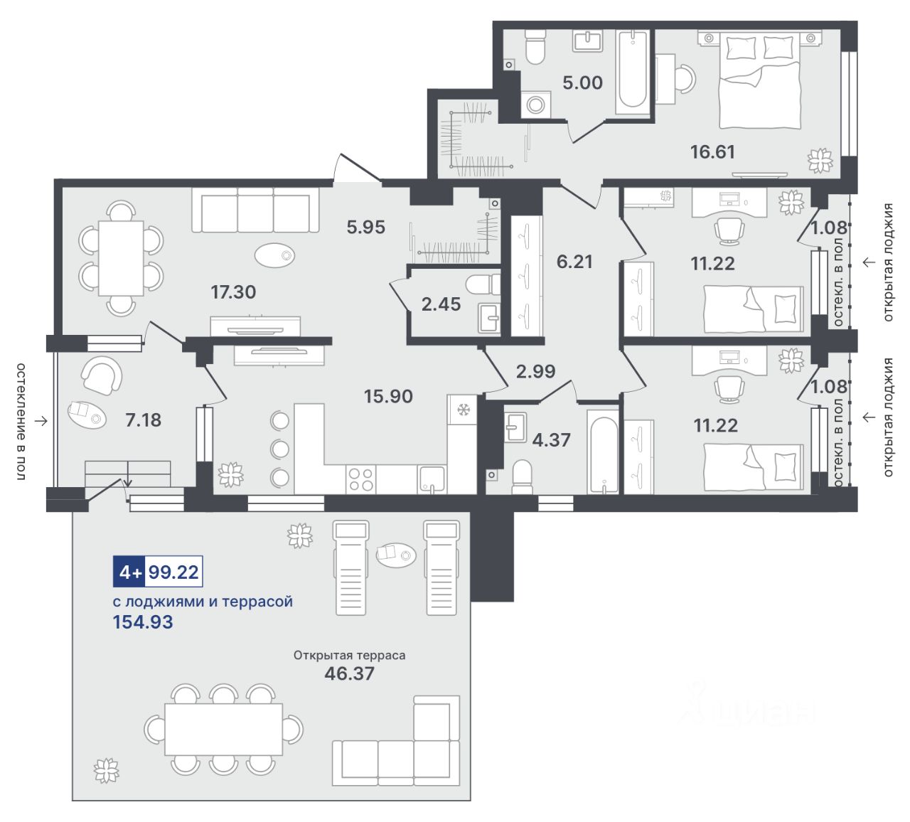 Общая площадь99,22 м²