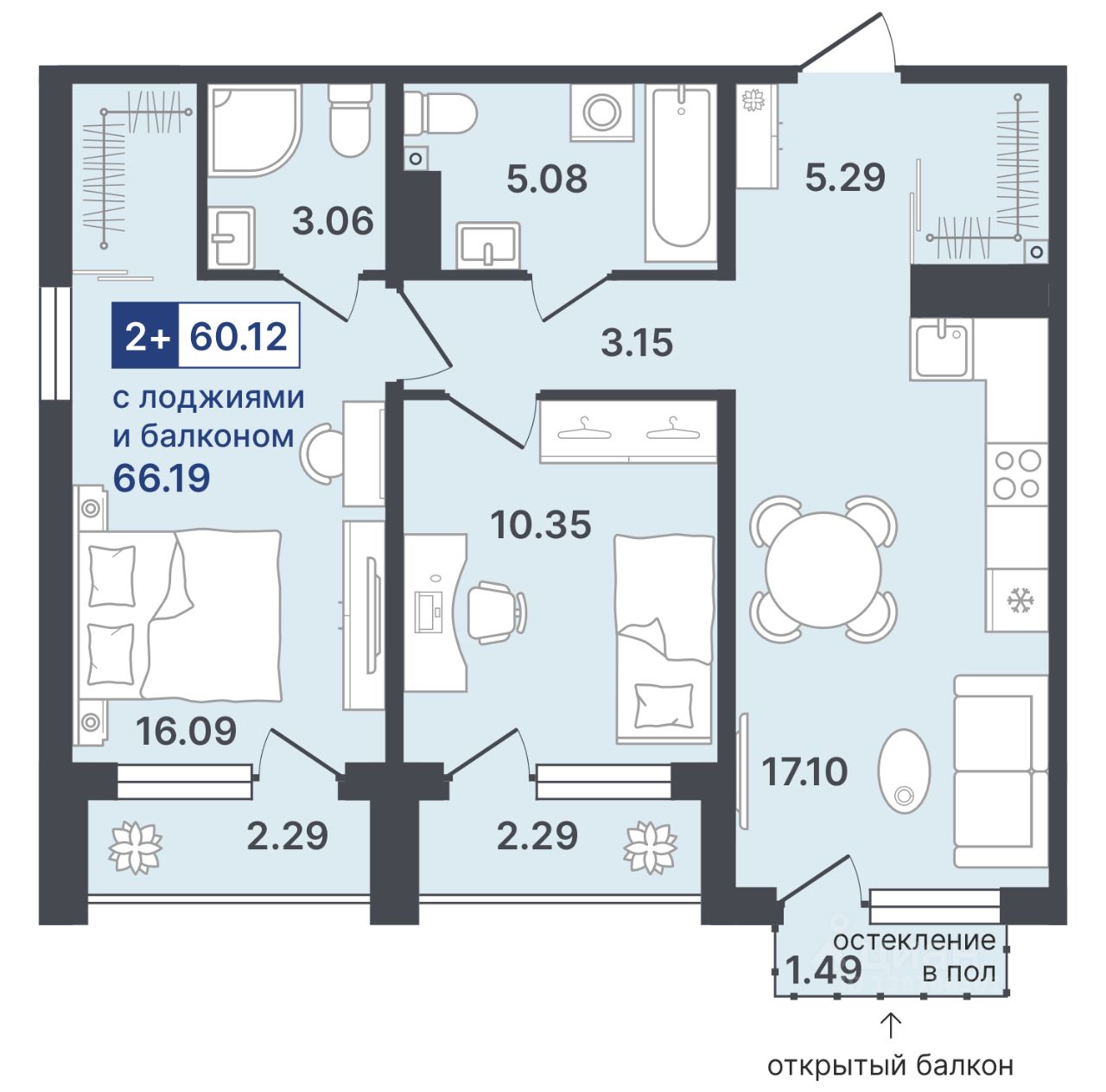 Общая площадь60,12 м²