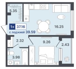 Общая площадь37,16 м²