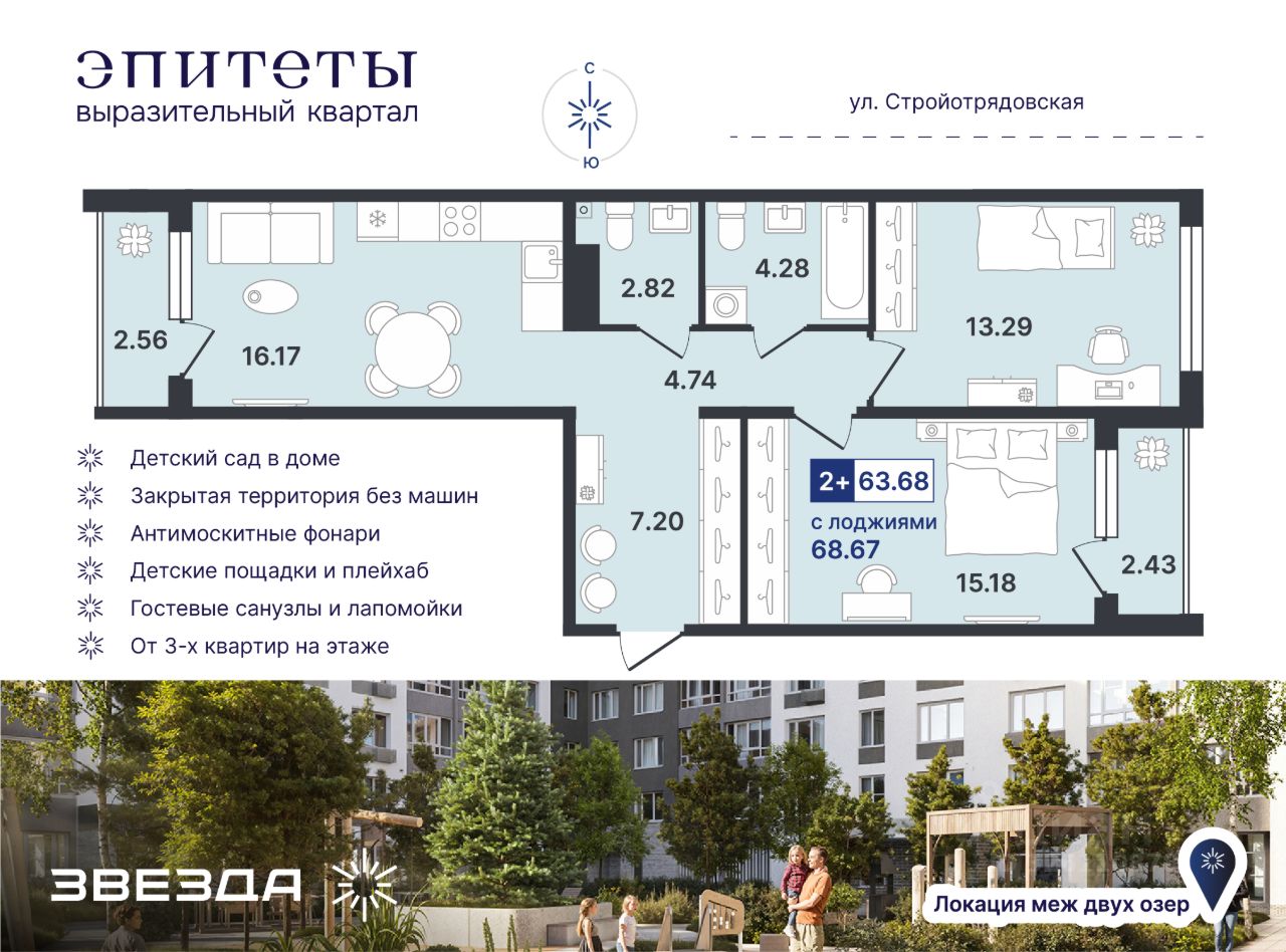 Общая площадь63,68 м²