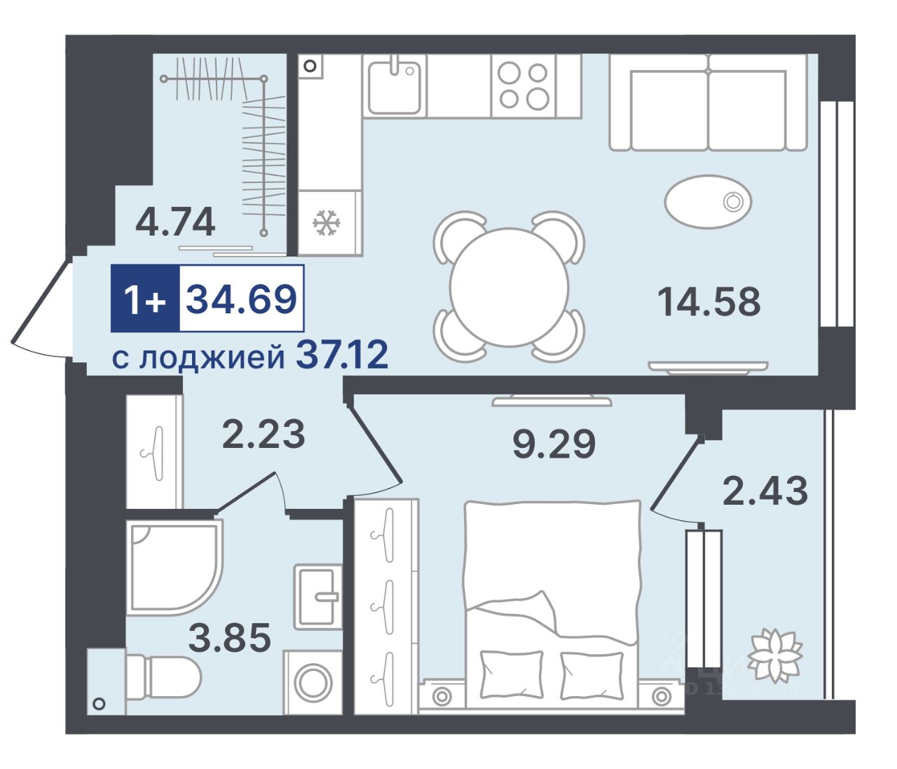 Общая площадь34,69 м²