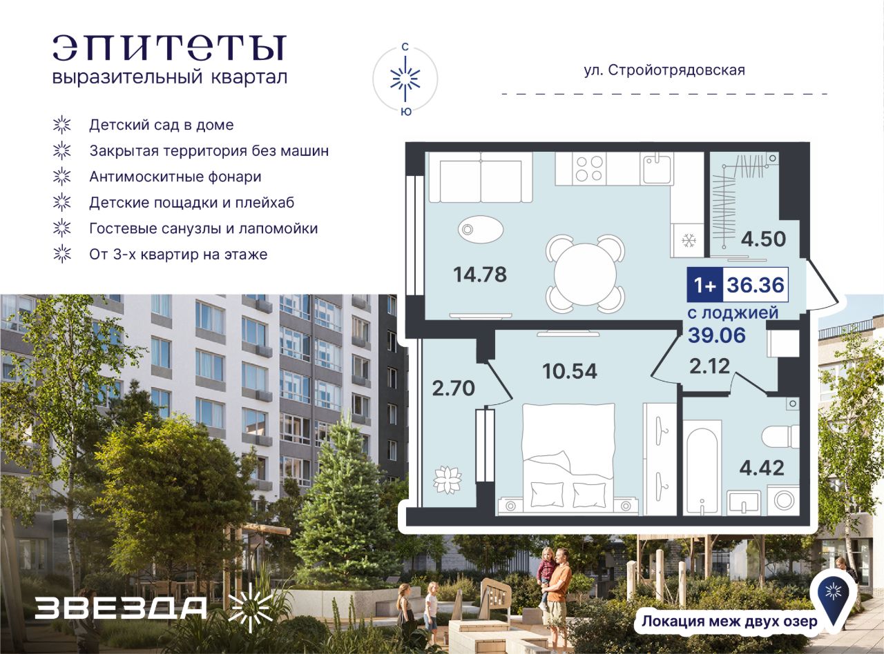 Выразительный квартал "Эпитеты" — сбалансированный проект, который сочетает атмосферу размеренной загородной жизни, насыщенную инфраструктуру и очарование природных локаций. ЖК комфорт-класса расположен на пересечении улиц Западносибирская и Стройотрядовская в окружении озер и зеленых массивов. Эклектичный стиль фасадов и соразмерная человеку архитектура станут украшением всего района.