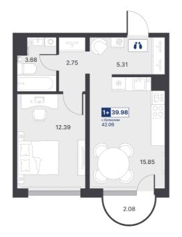 Общая площадь39,98 м²
