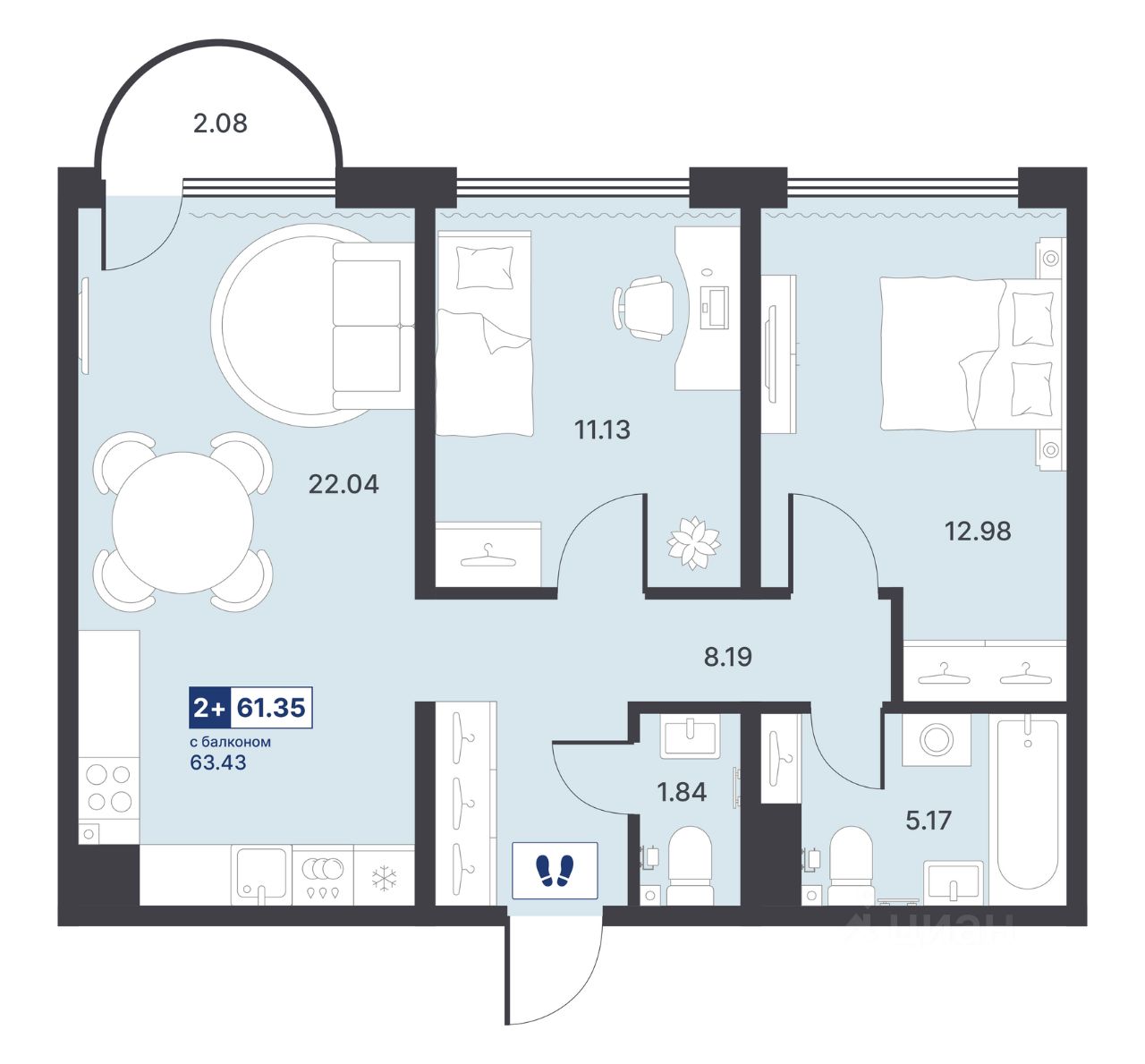 Общая площадь61,35 м²