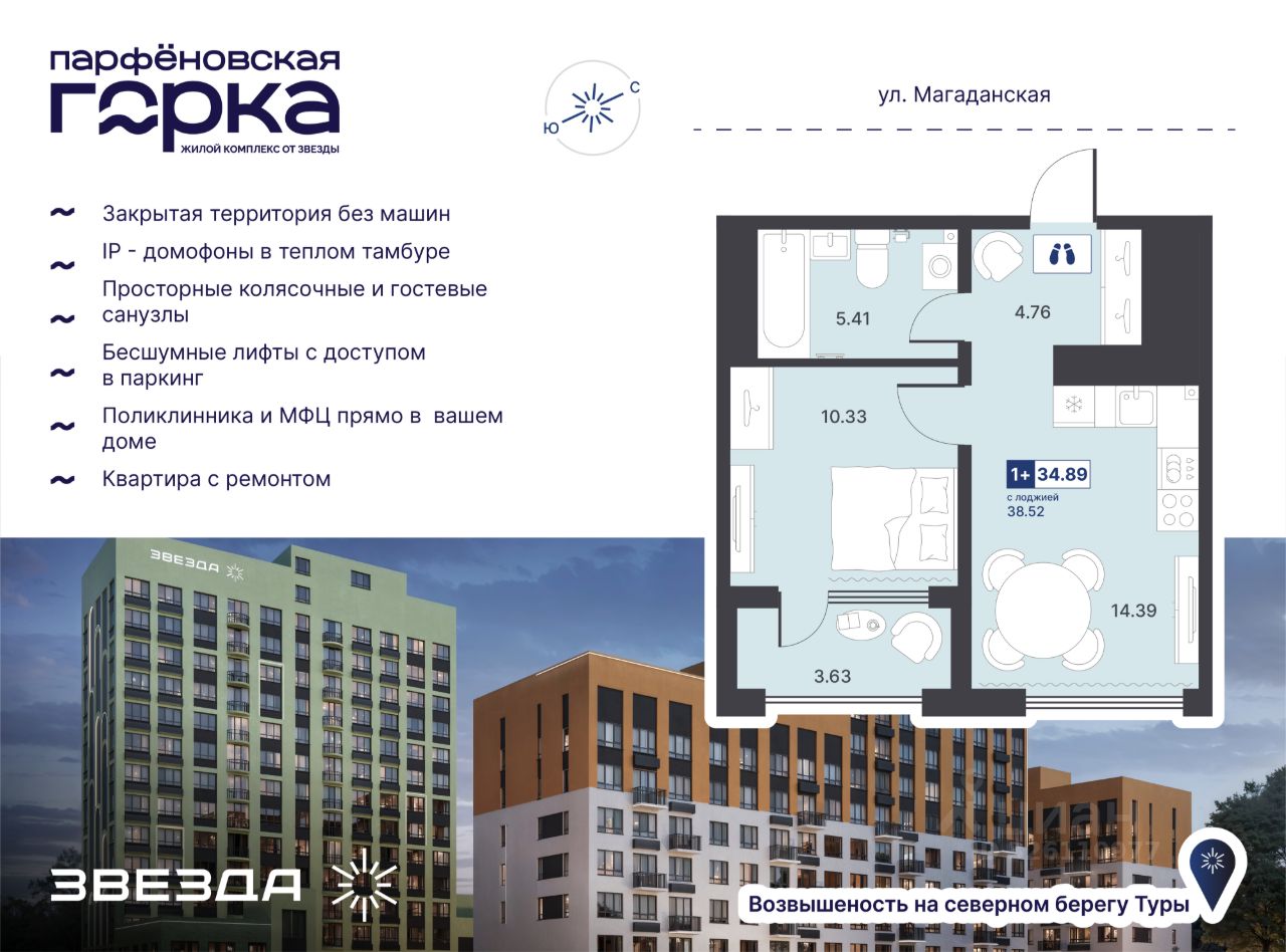 Название ЖК — не просто метафора, а часть истории Тюмени. В XVII веке на северном берегу Туры на возвышении основали деревню Парфенова. Сегодня на этом месте "Звезда" возводит современный ЖК комфорт-класса.