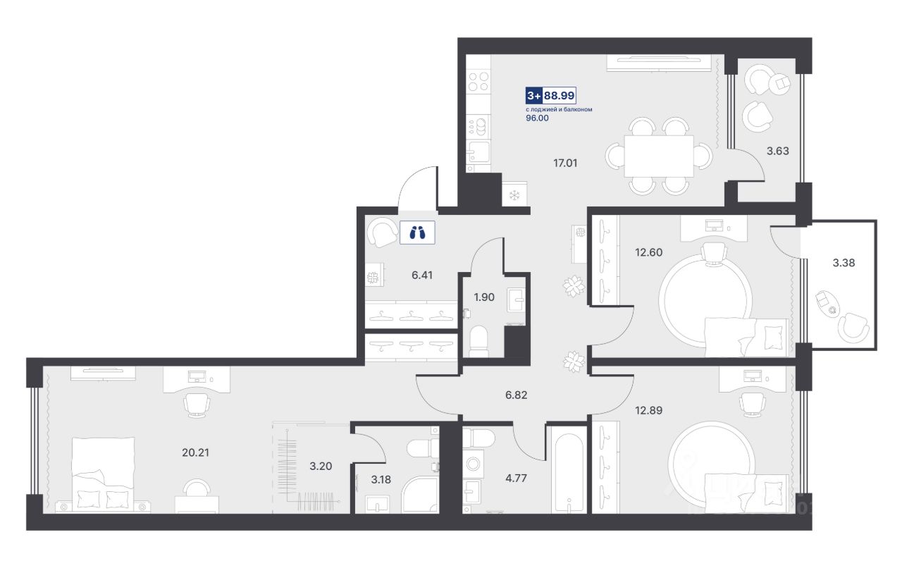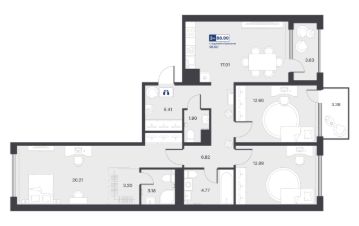 Общая площадь88,99 м²