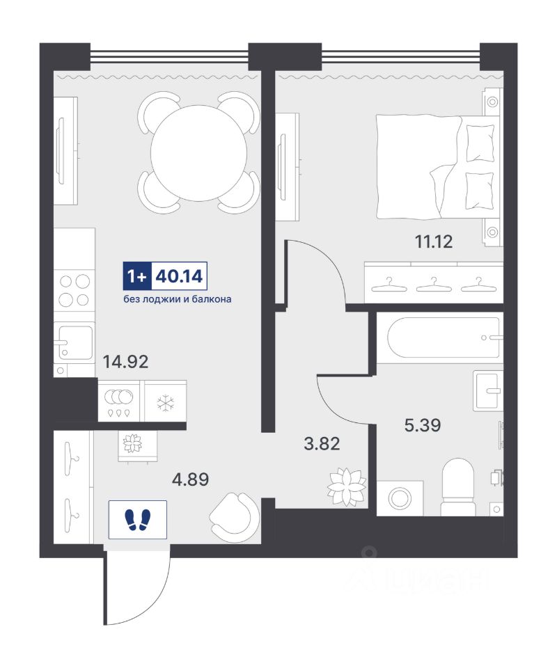 Общая площадь40,14 м²