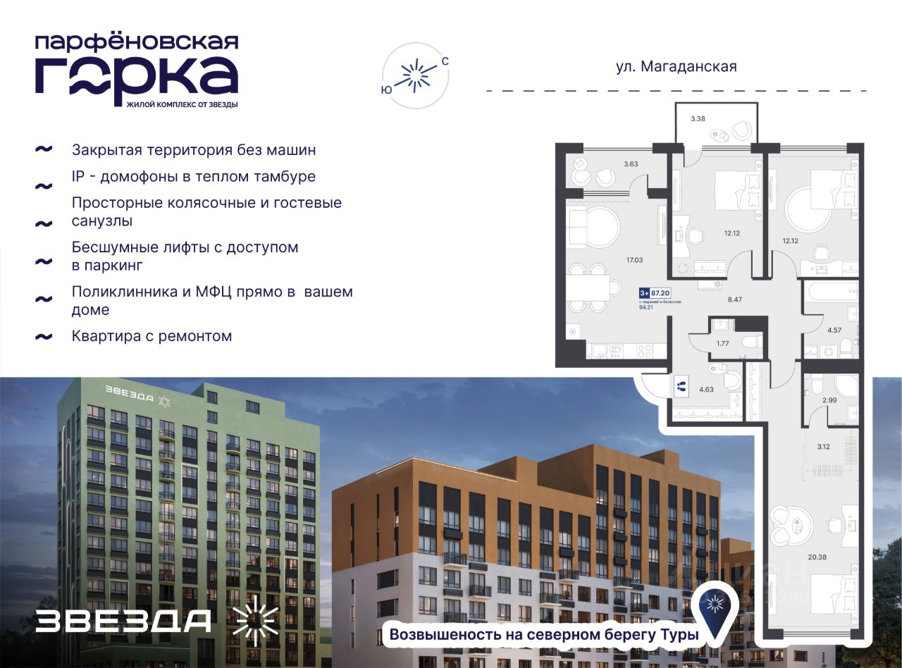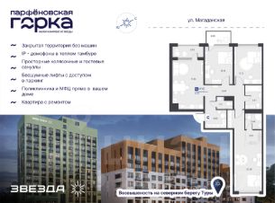 Название ЖК — не просто метафора, а часть истории Тюмени. В XVII веке на северном берегу Туры на возвышении основали деревню Парфенова. Сегодня на этом месте "Звезда" возводит современный ЖК комфорт-класса.