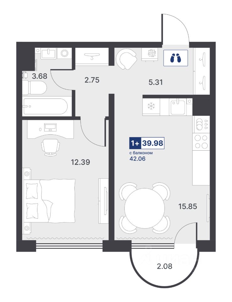 Жилая площадь12,4 м²