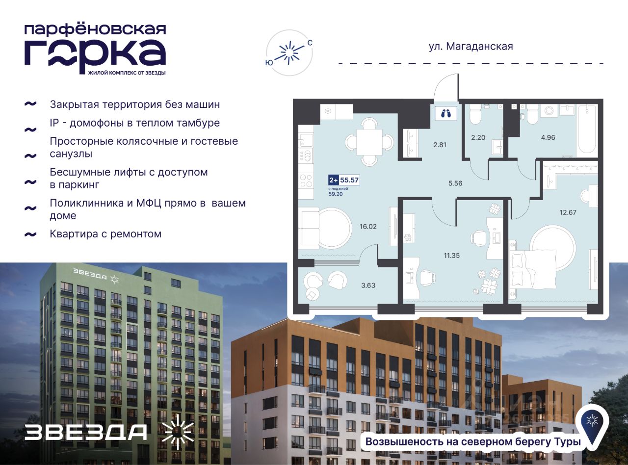 Название ЖК — не просто метафора, а часть истории Тюмени. В XVII веке на северном берегу Туры на возвышении основали деревню Парфенова. Сегодня на этом месте "Звезда" возводит современный ЖК комфорт-класса. Проект комплексного развития территории преобразит знакомый район Тюмени. В локации построят поликлинику с дневным стационаром на 100 посещений в смену и МФЦ. На первых этажах ЖК откроются супермаркеты, магазины, салоны и сервисы на каждый день — всё, что необходимо для комфортной жизни. Обслуживать дома будет сервисная компания "Звезда Управляет".