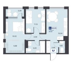 Общая площадь56,05 м²