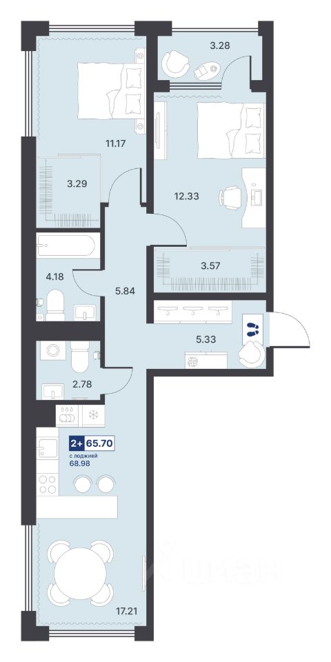 Общая площадь65,7 м²